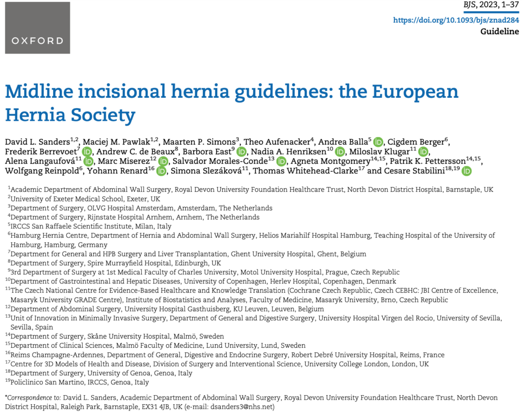 Sanders DL, Pawlak MM, de Beaux AC. European Hernia Society incisional hernia guidelines. Br J Surg. 2023;110:343–343. https://academic.oup.com/bjs/article/110/3/343/6970433
